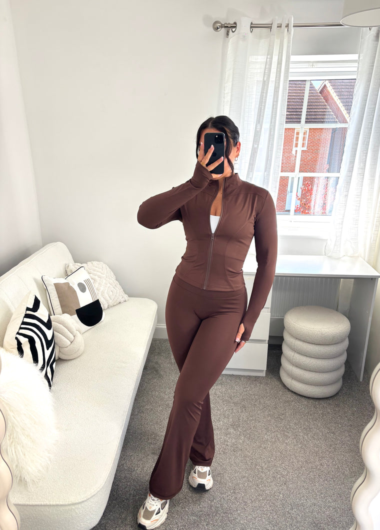 BECCA Chocolate Brown Scrunch Bum Flared Set