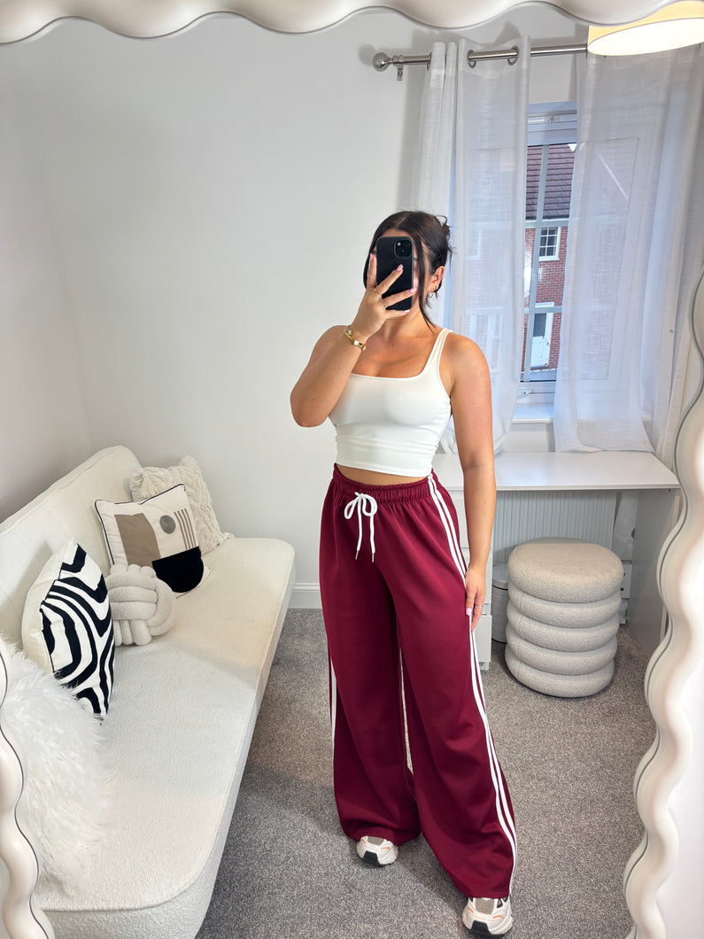 JAMIE Burgundy Stripe Wide Leg Jogger