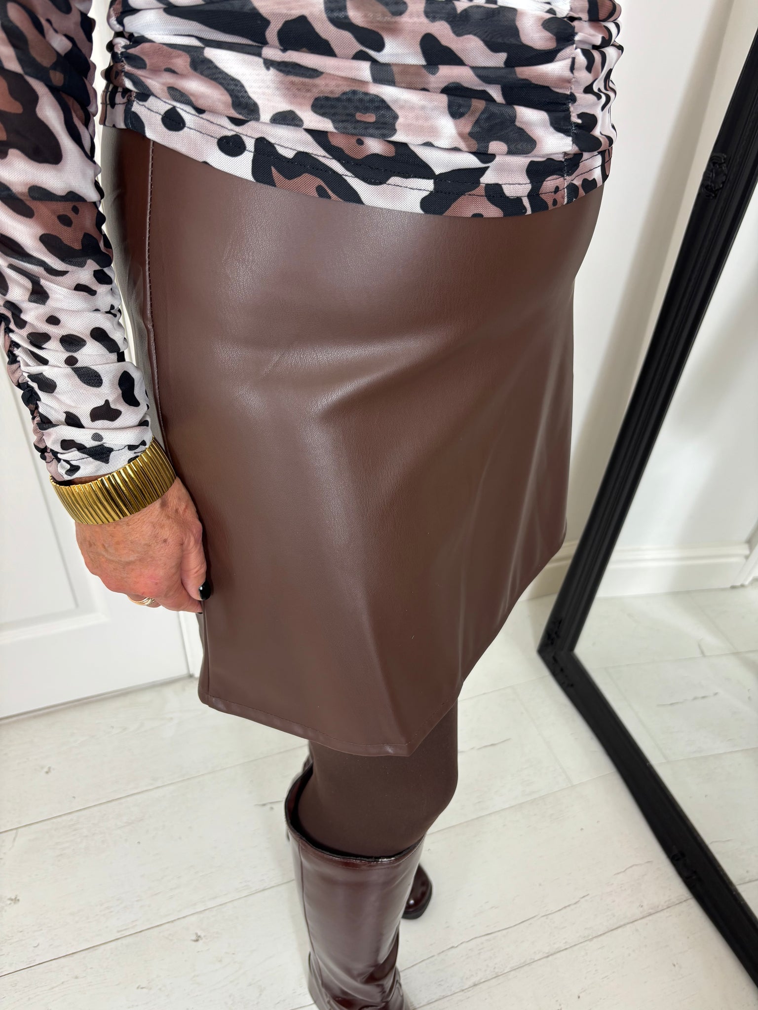 • Load image into Gallery viewer, SAVANNAH Brown Pu Skirt